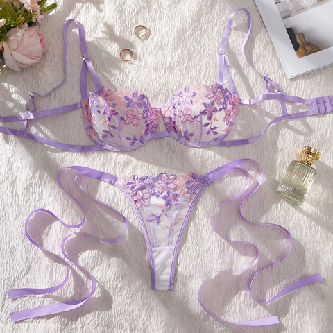 Сексуальное и эстетичное винно-Фиолетовое кружевное нижнее белье с цветочной вышивкой на День Святого Валентина